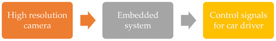 Modern embedded systems give the possibility of effective video sequence processing in real time. Algorithms for video sequence analysis can be based on classic image processing methods and on neural networks, the use of which is becoming more and more popular. Cameras are installed in cars and autonomous vehicles [,], for city monitoring, tracking [], but also in specialized applications, such as inspection vehicles []. Such systems help operators to observe urban spaces or machine surroundings and to supervise and respond to current events. In some cases, they are able to completely eliminate the human factor, automatically issuing specific commands to other systems. In the use of autonomous vehicles in airport areas [], the accuracy of the algorithms and the hardware performance of the devices are extremely important, because it is possible to ensure safety. Moreover, such vehicles should be extremely energy efficient due to the large areas of the airports in which they are moving and have the necessary energy reserve in the event of emergencies.