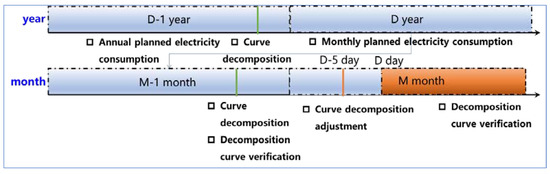 In the framework of a multi-scale and diversified electricity market, in order to achieve medium-to-long-term trading and short-term trading, and to connect with spot market trading, it is necessary to decompose medium-to-long-term trading contracts into electricity curves at different time scales [20]. This is the basis for signing electricity purchase and sales contracts with power grid companies and large users. As shown in Figure 4, the decomposition of medium-to-long-term contracts involves breaking down annual contracts into monthly scales, further breaking down monthly contracts into daily scales, and finally breaking down daily contracts into time-sharing power curves. The entire decomposition process involves a large time span and is coupled with the long-term, medium, and short-term scheduling of hydropower. At the same time, it is necessary to consider the impact of contract performance on the decomposition and the complex characteristics of hydropower.
