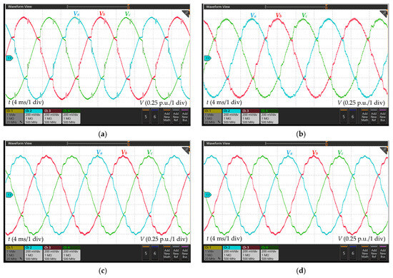 Node 4 voltage waveforms. (a) Without the B2B converter; (b) strategy #1; (c) strategy #2; (d) strategy #3.