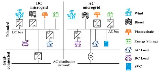 - Lotfi, H.; Khodaei, A. AC Versus DC Microgrid Planning. IEEE Trans. Smart Grid 2017, 8, 296–304. [Google Scholar] [CrossRef]