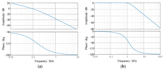 where Ts is the switching period and is equal to 100 μs. Zero point is set to offset the pole, and the cutoff frequency is set at 1 kHz. kp and ki are set as 2000πRC and 2000π. The Bode plot of Gopen(s) is shown in Figure 9a, and the Bode plot of the closed-loop transfer function Gclose(s) is shown in Figure 9b. Good track performance and fast dynamic response can thus be achieved.