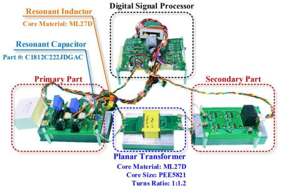 Experimental setup of the LLC resonant converter with planar transformer.