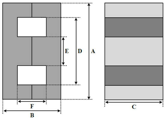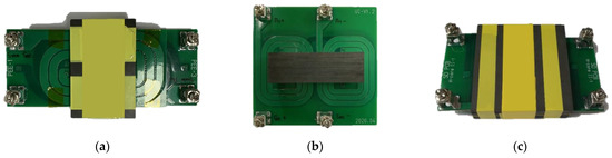 Planar transformers manufactured in various core shape. (a) PEE core. (b) UI core. (c) H core.