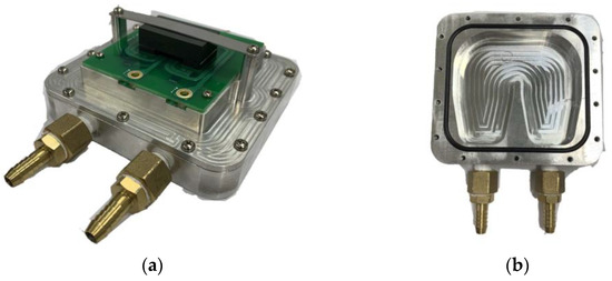 Planar transformer system with water cooling. (a) Planar transformer. (b) Bottom cooling water passage.