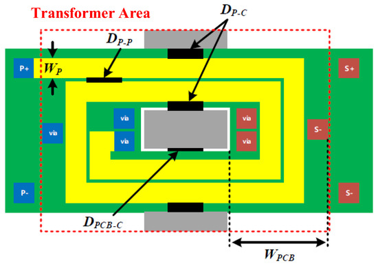 Spacing distance conditions for planar transformer.