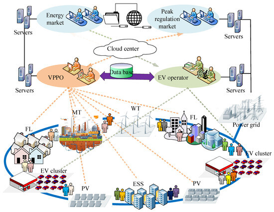 The overall block diagram of a VPP and an EV cluster power interaction.