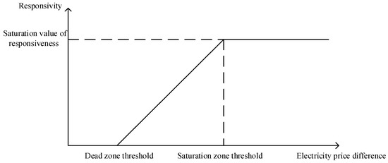 In this paper, EV users in the cluster are divided into two categories: price-insensitive users who start charging immediately when they reach the dwell time; price-sensitive users who tend to charge during low-price periods in order to reduce their own electricity purchase cost without affecting their travel plans. The responsiveness of price-sensitive users in the cluster can be simulated based on the principle of consumer psychology, as shown in Figure 5: