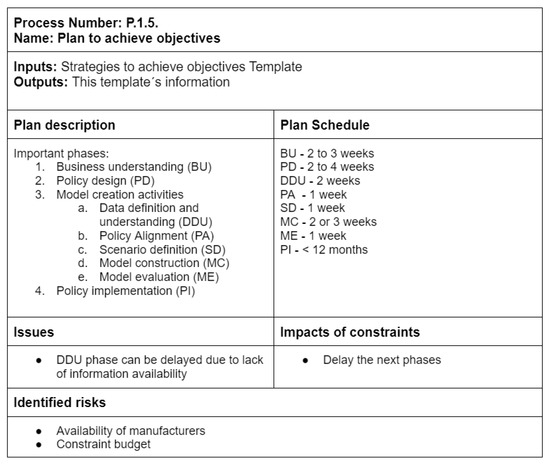 - Goal Definition: It entails defining business and policy goals, taking into account the information gathered in the first process. Business goals encompass the intended results established by a company, division, or specific stakeholder. These objectives may span several domains, such as financial, organizational, temporal, or model design characteristics. On the other hand, policy goals refer to the expected results that arise from the implementation of particular policy instruments. The objectives could include financial or energy-related aspects. An integral component of this process entails the identification of metrics for the purpose of evaluating the attainment of every objective.