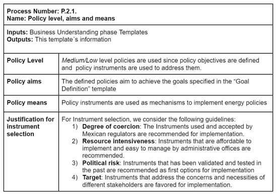 - Policy level, aims, and means: During this process, an analysis is conducted to determine the policy level by examining the stakeholder requirements and the available data for policy design. The execution of this process necessitates the determination of different degrees of abstraction, including high, medium, and low, along with a substantiated rationale for the chosen level. It is imperative to explicitly articulate the goals and objectives of a policy while establishing clear criteria for selecting an instrument. The establishment of these standards should consider various elements, such as the level of coercion involved, the necessary resources, the potential political risks, and the intended audience.