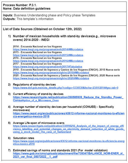 - Guidelines for Data Definition: The objective of this process is to establish a standardized approach for documenting information related to data sources, including details on the sources themselves as well as the data they include. The documentation for data sources should provide essential details such as the name, description, ownership, and location of the data sources. Furthermore, it is imperative to provide comprehensive information regarding the number of records, the division of data by time, the type of data source, the policy for updating the data, as well as the dates corresponding to the beginning and final records.