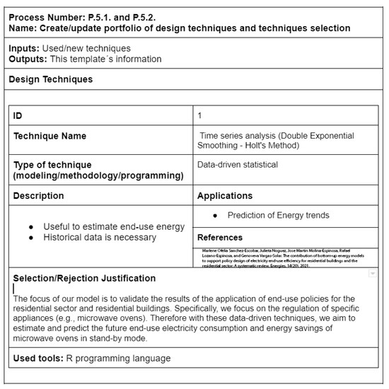 - Create/Update the Portfolio of Design Techniques: The range of approaches and methodologies employed in system modeling is vast and depends on the particular type of model being developed. This study presents an extensive categorization of modeling approaches and procedures specifically designed for the residential sector and residential buildings (see Table 2). The Residential Electricity end-uses option exhibits promising potential for expansion and enhancement, placing it as a valuable resource for future reference by organizations.