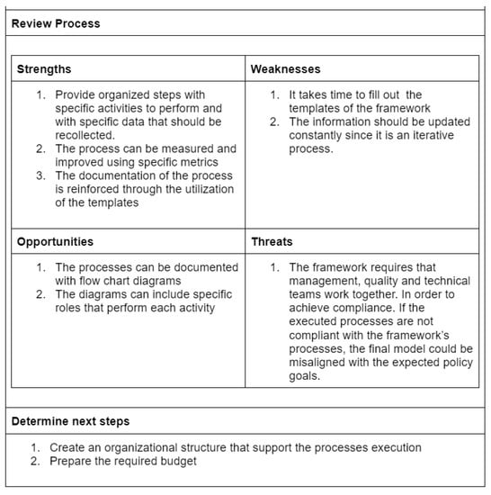- Define the process to be analyzed, such as the execution of the framework. Additionally, it was important to maintain a record of the actions involved in the process by using a Time Log.