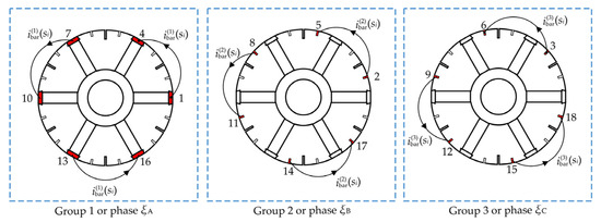 The three groups of cage bars can be identified as three cage phases ξA, ξB, and ξC, whose currents are , , and , respectively. With these phase identifications, the q- and d-axis cage currents under each rotor slip can be obtained as