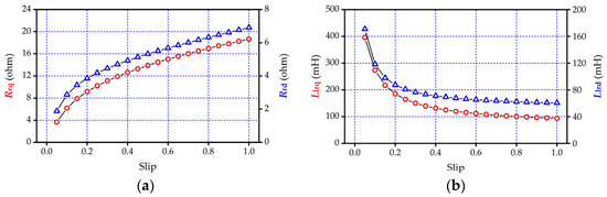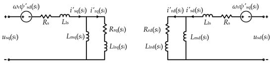 Second, based on the motor equivalent circuit [2] shown by Figure 10, the q- and d-axis rotor resistances Rrq(si)/Rrd(si) and leakage inductances Llrq(si)/Llrd (si) under slip si are obtained, respectively, as