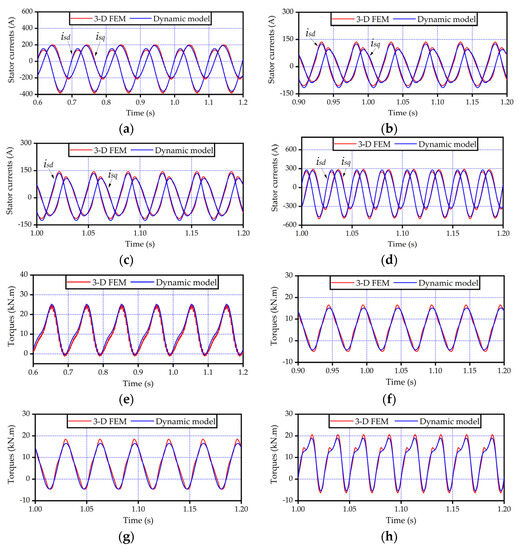 It can be confirmed that both the good curve agreements shown by Figure 14 and Figure 15 and the small errors displayed in Table 1 provide the sound accuracy validations for the dynamic model. Meanwhile, based on the fact that the model is established by the 2-D FEA using the solid-steel conductivity corrections, the given curve comparisons and errors exhibiting small values also testify the accuracies of the correction factors as well as the effectiveness of the paper-proposed method to consider the end effects in the 2-D FE motor model.