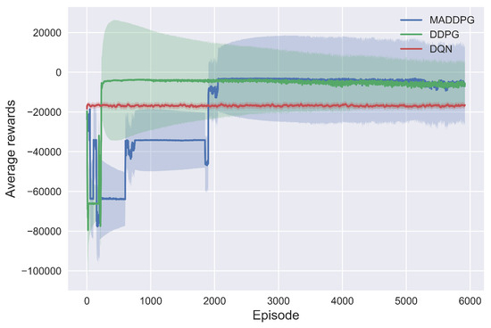 Training processes of the DQN, DDPG, and MADDPG algorithms.