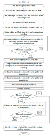 - Balakrishna, G.; Babu, C.S. Particle swarm optimization based network reconfiguration in distribution system with distributed generation and capacitor placement. Int. J. Eng. Sci. 2014, 3, 55–60. [Google Scholar]