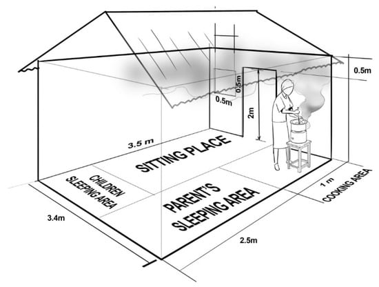 The amount of ingredients used to cook the meals was enough to feed five people. Ugali was prepared with 1 kg of Pembe-brand maize flour and 2 L of water, while 540 g of sukuma wiki, 240 g of tomatoes, 100 g of cooking oil, 100 g of onions, and 11 g of salt were used for the second dish. This meal is considered sufficient for a standard Kenyan household of five people [42,43]. Since the study aimed to take measurements under normal practices, it was left to the cooks to decide on whether to open or close the doors and windows of the cooking areas/kitchen when cooking the meals.