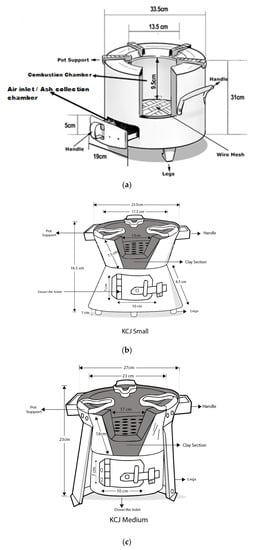 (a) Jikokoa stove, (b) small-sized KCJ, and (c) medium-sized KCJ (Infographic by Fucha Media, Nairobi).