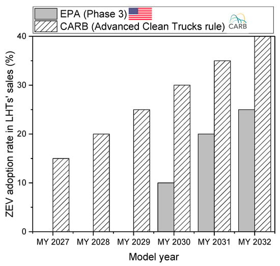EPA projected the adoption of ZEV in LHTs, along with ZEV rates in California’s Advanced Clean Trucks rule [,].
