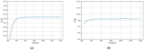 For the field analysis, we assumed a cubic computing space in which the transformer is located. Figure 2 shows the object under consideration, placed in the center of the cube area space of the “k” edge length. Therefore, before performing the proper field calculations, the influence of the cube’s edge length on the total energy accumulated in the leakage zone was analyzed (Figure 3). Although the transformer shell-type structure analyzed in this article characterizes relatively small leakage flux density values outside the transformer window, their influence on the leakage reactance must be considered.