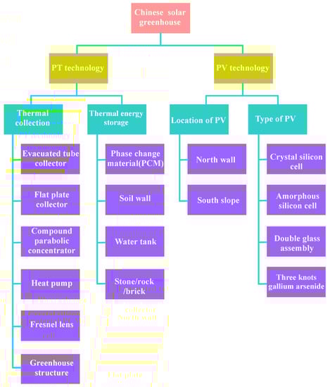 Classification of photothermal and photovoltaic technology for a Chinese solar greenhouse.