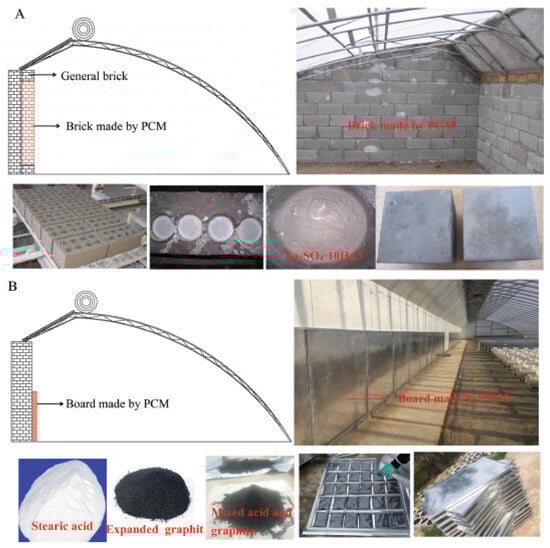- Shi, W.; Cheng, S.X. Temperature control effect of paraffin graphite composite phase change materials in greenhouse. Bull. Chin. Ceram. Soc. 2017, 36, 4112–4116, (In Chinese with English Abstract). [Google Scholar]