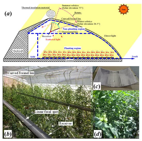- Li, Z.Y.; Ma, X.L.; Zhao, Y.S.; Zheng, H.F. Study on the performance of a curved Fresnel solar concentrated system with seasonal underground heat storage for the greenhouse application. J. Sol. Energy Eng. 2019, 141, 011004. [Google Scholar] [CrossRef]