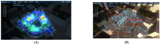 Application and implementation of UWB-based personnel location technology. (A) Thermal rendering for personnel performance monitored by UWB. (B). Personnel track diagram.