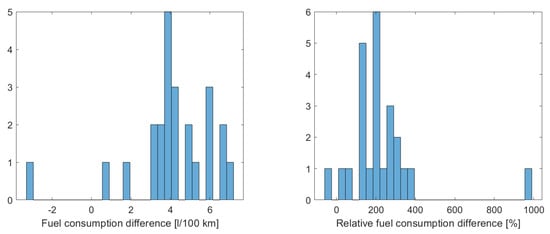 [L/100 km]. In terms of relative gap, the maximum was 966.1867%, while the minimum was −45.3823%. The average relative fuel consumption gap in the study was 35.0474%.