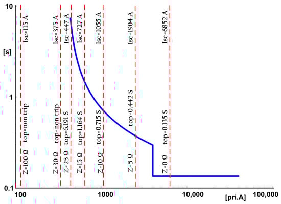 OC relay characteristic curve of the substation 20 kV feeder.