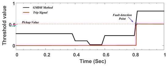 GMDH fault detection method for the main feeder with 6 MW DG capacity and 25 Ω impedance fault—fault at Point 1.