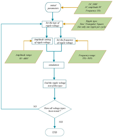Under the three kinds of ripple voltages, the average power consumption had the same relationship with frequency and ripple coefficient. At low ripple coefficients, the change in average power consumption was relatively slow. However, when the ripple coefficient exceeded 15%, the average power consumption increased significantly with the increase in ripple coefficient. The increase in ripple coefficient led to an increase in average power consumption, and an increase in frequency also increased the average power consumption.