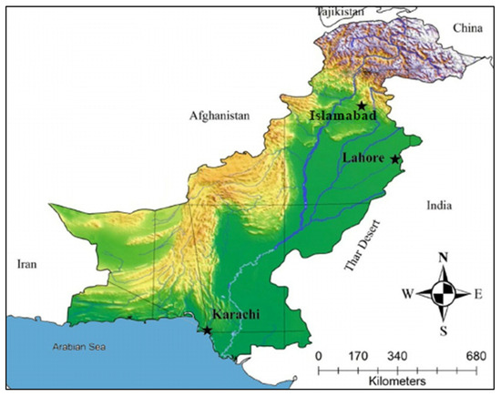 - Weather Atlas, Pakistan. Detailed Climate Information and Monthly Weather Forecast. 2023. Available online: https://www.weather-atlas.com/en/pakistan/climate (accessed on 15 April 2023).