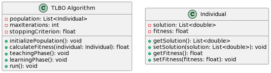 The Teaching–learning-Based Optimization (TLBO) algorithm is a population-based optimization technique that draws inspiration from the teaching and learning processes observed in a classroom. In TLBO, the individuals in a population represent potential solutions to an optimization problem, and the algorithm iteratively improves these solutions over generations. Below (Algorithm 1) is a basic mathematical modeling of the TLBO algorithm.
