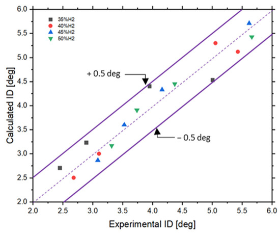 Equation (3) is used to take into consideration the effect of the gas composition in the combustion chamber. With these modifications, the new modeled auto-ignition delay becomes sensitive to the percentages of hydrogen and natural gas in the combustion chamber and also to the amount of diesel injected (pilot fuel), and the dominant conditions in the combustion chamber at the injection moment.