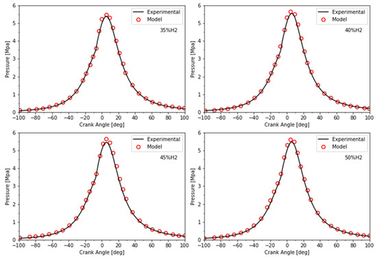 The model presented was developed to distinguish the two main phases of combustion in dual fuel mode. The first phase is treated by a quasi-dimensional model, inspired by the model of Hiroyasu et al. [36,37], controlled by the pilot fuel combustion. Whereas, the second phase, controlled by the gas mixture combustion, is treated by a new mathematical approach based on Gaussian modeling. Each phase is treated separately, taking into account the interaction between the two and carefully determining the auto-ignition delay of the pilot fuel and the ignition delay of the air–gas mixture. Subsequently, the reliability of the developed model is extensively validated for the HNG/diesel dual fuel mode according to engine loads for different primary gas compositions in terms of hydrogen percentage.