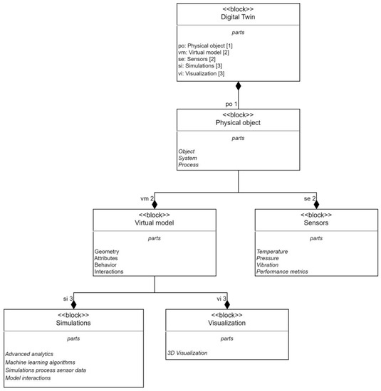 As presented in Figure 1, the core components of a DT include the following [14]: