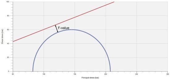 F value measuring the shortest distance from the Mohr circle to the failure envelope.