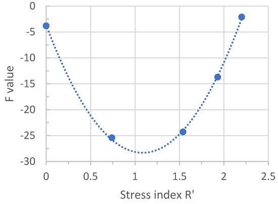 Maximum F value in Caprock 1 in response to varying stress index R’ while keeping other base case properties constant.