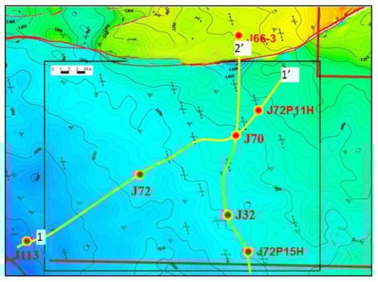Structural map of the Jin 72 well area of the Dongsheng gas field.