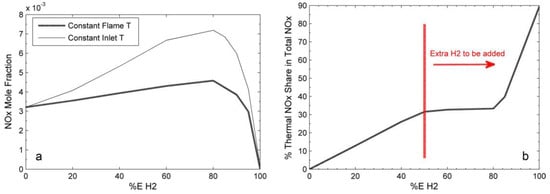 - Meziane, S.; Bentebbiche, A. Numerical study of blended fuel natural gas-hydrogen combustion in rich/quench/lean combustor of a micro gas turbine. Int. J. Hydrogen Energy 2019, 44, 15610–15621. [Google Scholar] [CrossRef]