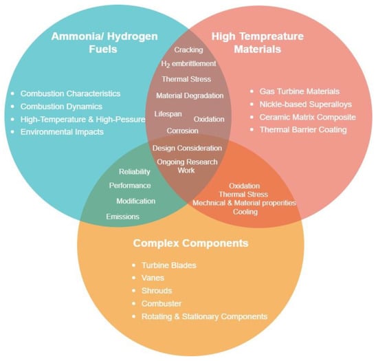Alnaeli, M.; Alnajideen, M.; Navaratne, R.; Shi, H.; Czyzewski, P.; Wang, P.; Eckart, S.; Alsaegh, A.; Alnasif, A.; Mashruk, S.; et al. High-Temperature Materials for Complex Components in Ammonia/Hydrogen Gas Turbines: A Critical Review. Energies 2023, 16, 6973. https://doi.org/10.3390/en16196973