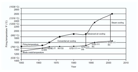 | [212,213] | 1989 | Exp. | Alstom’s GT24 | N. G | 1093 °C (1999 °F) | 188 MW | 36.9% | Combustor—Ni-based superalloy + coating. Blades—Single crystal alloy + coating. | Superior part load efficiencies. Low emissions from 40% to 100% load. High fuel flexibility (natural gas composition; oil). Very low combined cycle start-up times. |