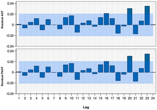 - Model IdentificationProduce ESA-SARIMAX correlograms. Figure 4 shows a time series correlogram with 24 lags for an hourly time series. The correlograms present the autocorrelation and partial autocorrelation functions with a 95% confidence interval.