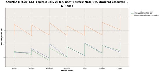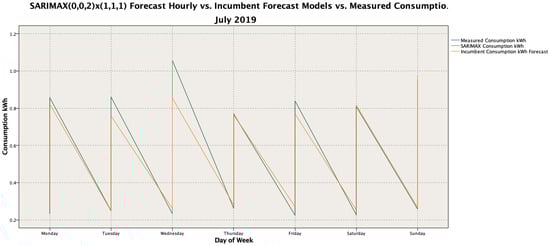 - Benchmark SARIMAX performance model improvement with incumbent forecasting validation metrics and plot measured dependent variable vs. incumbent forecasting model estimates vs. SARIMAX model estimates.