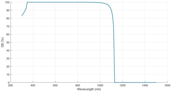 Quantum efficiency versus the spectral wavelength band for the suggested solar cell structure.