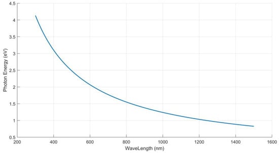 Photon energy versus the spectral wavelength band of the suggested solar cell structure.