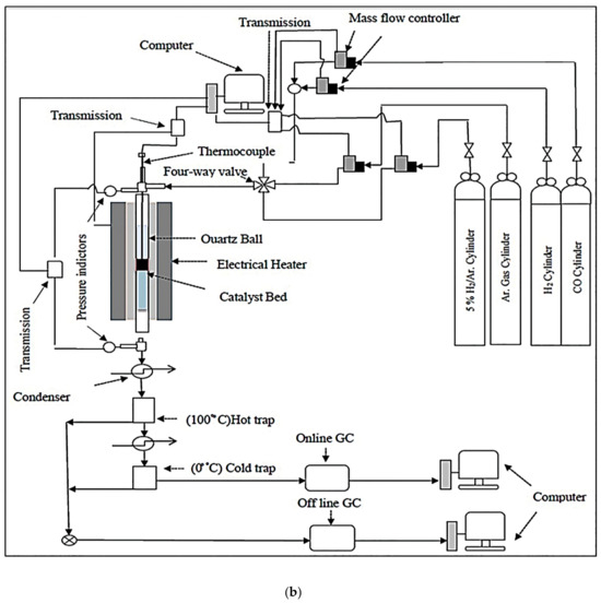 The reactant conversions (i.e., CO) and product selectivity were calculated using Equations (1)–(4).