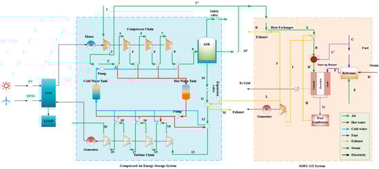 2.1. CAES-SOFC/MGT Hybrid System Configuration and Description